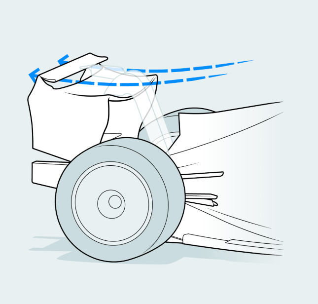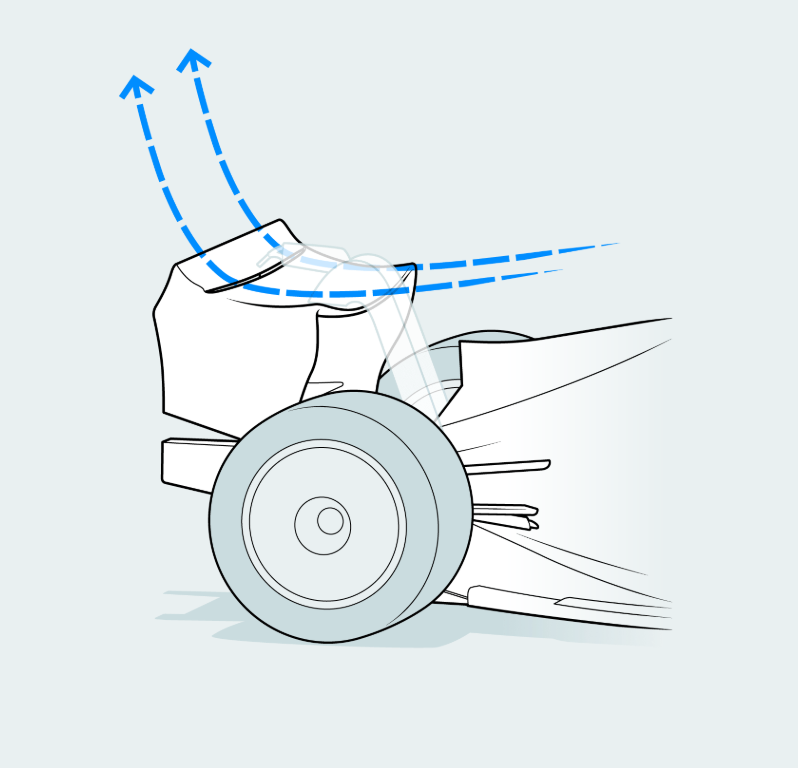정리하면, DRS를 작동하면 리어 윙의 일부가 열리면서 공기가 더 원활하게 흐르게 됩니다. 이로 인해 공기 저항이 크게 줄어들어 직선 구간에서 최고 속도를 약 10~12km/h 더 높일 수 있습니다. 이를 통해 앞 차를 보다 쉽게 추월할 수 있습니다. 단, DRS는 지정된 구간에서만 그리고 앞 차와의 거리가 1초 이내일 때만 사용할 수 있습니다.
